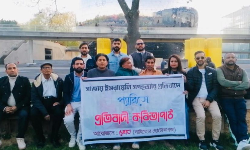 ফিলিস্তিনে ইসরায়েলি গণহত্যার প্রতিবাদে প্যারিসে ‘প্রতিবাদী কবিতাপাঠ’ অনুষ্ঠিত হয়েছে। সাহিত্যের ছোটোকাগজ ‘স্রোত’ এর উদ্যোগে শুক্রবার (১১ এপ্রিল) সন্ধ্যা ৬টায় ‘প্রতিবাদী কবিতা পাঠ’ অনুষ্ঠিত হয়।