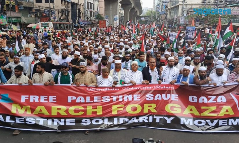 ঢাকা: ফিলিস্তিনের গাজা ও রাফা শহরে ইসরায়েলি বাহিনীর বর্বরোবিত গণহত্যার প্রতিবাদে ‘প্যালেস্টাইন সলিডারিটি মুভমেন্ট’-এর ব্যানারে আয়োজিত ‘মার্চ ফর গাজা’ কর্মসূচিকে যোগ দিতে রাধানীর বাংলামোটর, কাকরাইল মোড়, জিরো পয়েন্ট, বকশিবাজার মোড় ও নীলক্ষেত মোড় থেকে মিছিল নিয়ে সোহরাওয়ার্দী উদ্যানে ঢুকছে হাজার হাজার মানুষ।