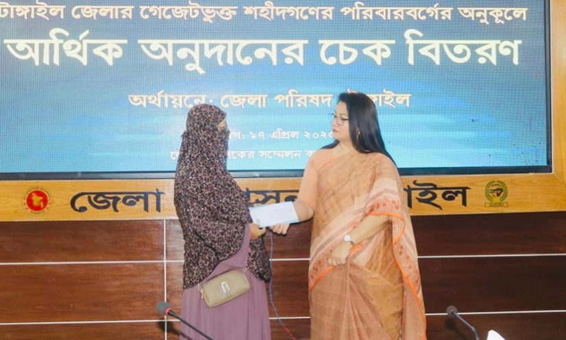 টাঙ্গাইল: ছাত্র-জনতার গণঅভ্যুত্থানে টাঙ্গাইল জেলার গেজেটভুক্ত শহিদদের পরিবারের মাঝে আর্থিক অনুদানের চেক বিতরণ করা হয়েছে।