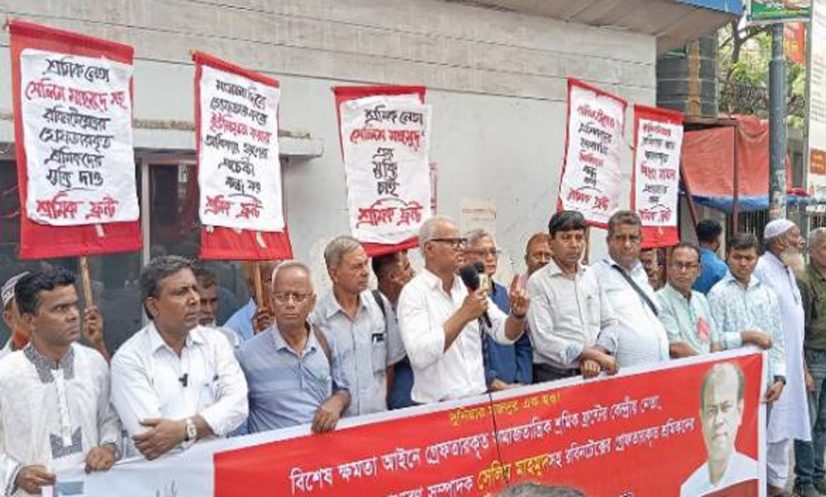 ঢাকা: বিশেষ ক্ষমতা আইনে গ্রেফতার করা সমাজতান্ত্রিক শ্রমিক ফ্রন্টের কেন্দ্রীয় নেতা ও গার্মেন্টস শ্রমিক ফ্রন্টের সাধারণ সম্পাদক সেলিম মাহমুদসহ রবিনাটক্সের গ্রেফতার হওয়া সব শ্রমিকের মুক্তির দাবি জানিয়েছে বাংলাদেশের সমাজতান্ত্রিক দল (বাসদ)।