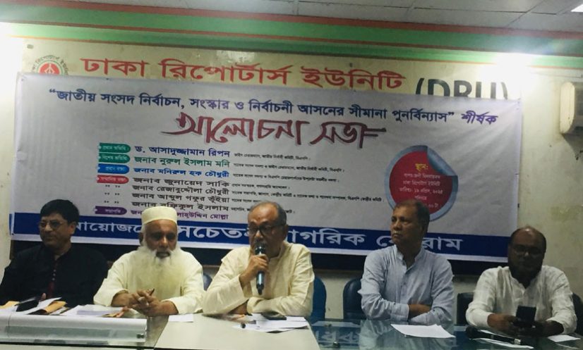 ‘জাতীয় সংসদ নির্বাচন, সংস্কার ও নির্বাচনী আসনের সীমানা পুনর্বিন্যাস’ শীর্ষক এ আলোচনা সভা আয়োজন করে ‘সচেতন নাগরিক ফোরাম’ নামের একটি সংগঠন।