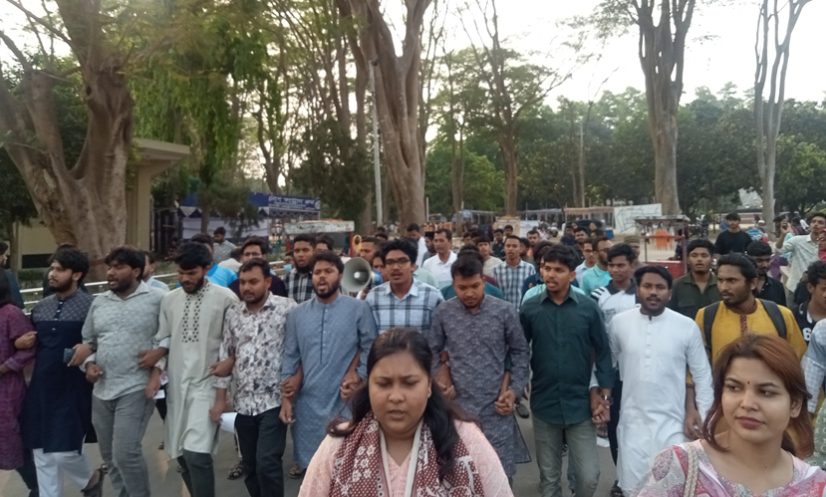 এর আগে, বিকাল সাড়ে তিনটার দিকে বিশ্ববিদ্যালয়ের জোহা চত্বর থেকে একটি মিছিলের মধ্য দিয়ে বিক্ষোভ কর্মসূচি শুরু করেন শিক্ষার্থীরা। এরপর মিছিলটি ক্যাম্পাসের বিভিন্ন গুরুত্বপূর্ণ সড়ক প্রদক্ষিণ করে যথাস্থানে এসে একটি সংক্ষিপ্ত সমাবেশে মিলিত হয়।