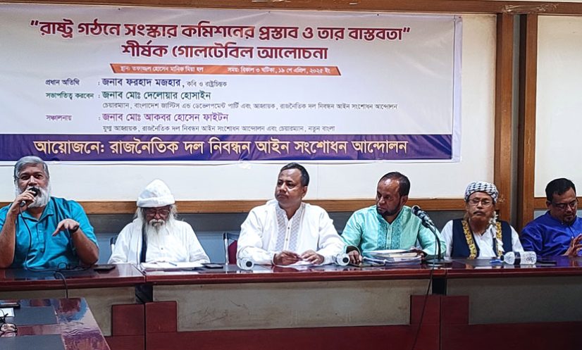 শনিবার (১৯ এপ্রিল) বিকেলে জাতীয় প্রেসক্লাবের তফাজ্জল হোসেন মানিক মিয়া হলে আয়োজিত ‘রাষ্ট্র গঠনে সংস্কার কমিশনের প্রস্তাব ও বাস্তবতা’ শীর্ষক আলোচনায় এ তথ্য উঠে আসে। রাজনৈতিক দল নিবন্ধন আইন সংশোধন আন্দোলনের উদ্যোগে এ আয়োজন করা হয়।