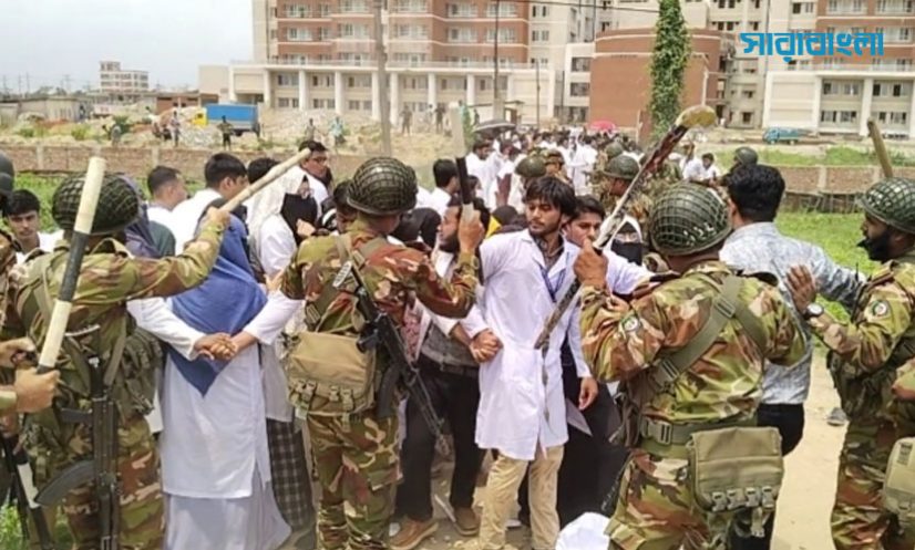 সেনাবাহিনীর কর্মকর্তা মেজর মেজবাহ বলেন, ‘আমরা প্রথমে এসে শিক্ষার্থীদের বুঝিয়েছি। পরে বল প্রয়োগ করে শিক্ষার্থীদের ক্যাম্পাসে পাঠিয়েছি।’