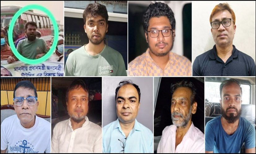 গ্রেফতারকৃতরা হলেন- নিষিদ্ধ ঘোষিত সংগঠন ছাত্রলীগের বংশাল থানা ৩৩নং ওয়ার্ডের সাধারণ সম্পাদক মো. বাপ্পি (৩০), আওয়ামী লীগের দক্ষিণ বাড্ডা বাজার ইউনিটের সহ-সভাপতি মো. মহিবুর রহমান (৫০), কুমিল্লার মনোহরগঞ্জ থানার আওয়ামী লীগের যুগ্ম সাধারণ সম্পাদক আবুল কালাম আজাদ (৪৭), বংশাল থানা ৩২নং ওয়ার্ড আওয়ামী লীগের সহ-সভাপতি বাবু আহাম্মেদ (৫৫), ২২নং ওয়ার্ড আওয়ামী লীগের সাবেক সভাপতি আব্দুল খালেক (৫৫), কলাবাগান থানা বঙ্গবন্ধু পরিষদের সাধারণ সম্পাদক মো. কবির হোসেন (৪৮), ছাত্রলীগের ঢাকা বিশ্ববিদ্যালয় জগন্নাথ হল শাখার নাট্য ও বিতর্ক বিষয়ক সম্পাদক দীপম সাহা (২৬), ছাত্রলীগের ডেমরা শাখার সাবেক সাধারণ সম্পাদক কাজী ইসমাইল হোসেন (৪২) ও ছাত্রলীগ কর্মী মো. মুহতাসিন ফুয়াদ ওরফে পিয়াল।