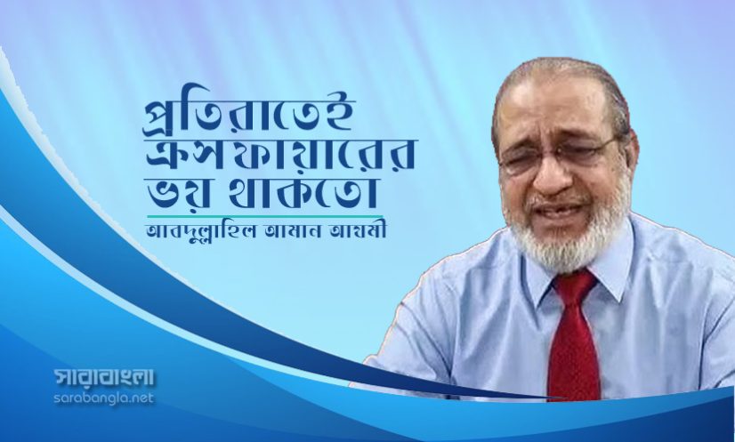 আবদুল্লাহিল আমান আযমী: আমি গেল আট বছর বন্দি থাকা অবস্থায় পৃথিবীর কোনো আলো দেখিনি। প্রতি রাতেই ক্রসফায়ারের ভয় থাকতো। তারা খুব দুর্ব্যবহার করতো আমার সঙ্গে। আমি তাহাজ্জুদ পড়ে আল্লাহর কাছে শুধু কান্না করতাম। আমার লাশটা যেন পরিবারের কাছে যায়।