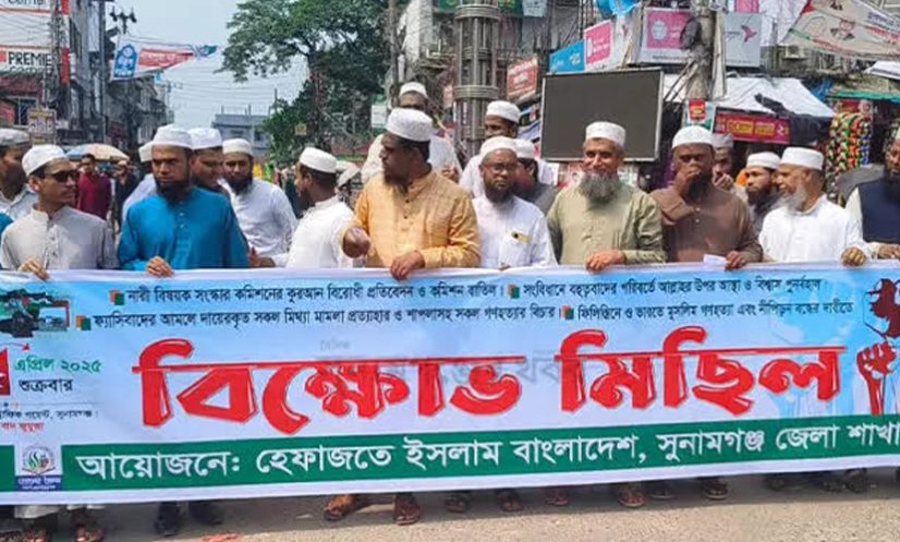 সুনামগঞ্জ: নারী বিষয়ক সংস্কার কমিশনের কুরআন বিরোধী প্রতিবেদন ও কমিশন বাতিলের দাবিতে হেফাজতে ইসলামের বিক্ষোভ মিছিল ও সমাবেশ অনুষ্ঠিত হয়েছে।