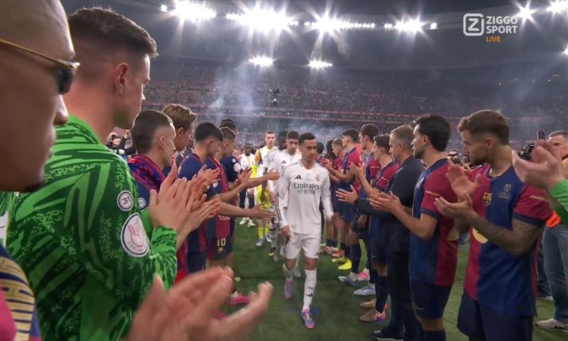 ঘটনাবহুল এই ম্যাচের পর রিয়াল ফুটবলাররা যখন মেডেল নিতে মঞ্চে উঠছিলেন, তখন সবাইকে অবাক করে দিয়ে তাদের ‘গার্ড অফ অনার’ দিয়েছে বার্সা ফুটবলাররা। রিয়াল কোচ কার্লো আনচেলত্তিসহ এই সম্মান পেয়েছেন দলের সবাই। এই সময় বিভেদ ভুলে দুই দলের ফুটবলারদের হাত মেলাতেও দেখা যায়।