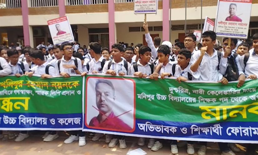 ঢাকা: শিক্ষার্থীদের যৌন হয়রানির অভিযোগে মনিপুর উচ্চ বিদ্যালয়ের বাংলা বিভাগের শিক্ষক খলিলুর রহমান নয়নের অপসারণ চেয়ে বিক্ষোভ করেছে শিক্ষার্থী ও অভিভাবকরা।