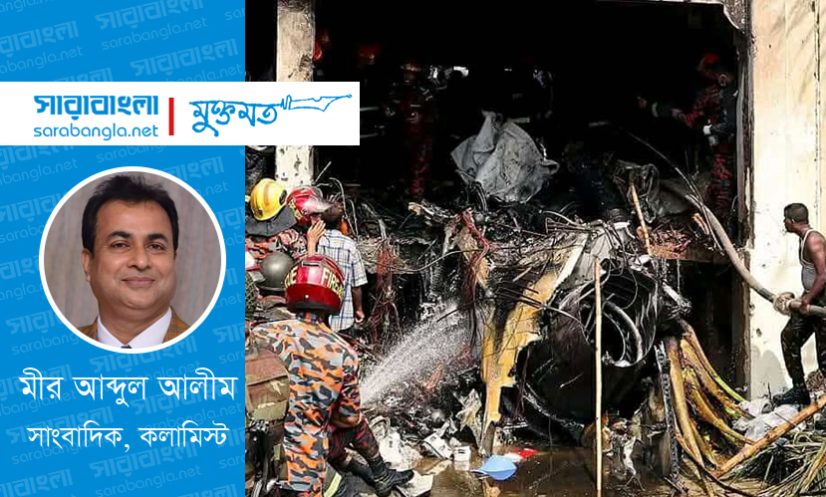বিমান না, যেন মৃত্যুর আগুন!- সাধারণত যুদ্ধবিমান যখন আকাশে উড়ে, তখন জাতির বুক গর্বে ভরে ওঠে। শিশুদের চোখে দেখা যায় বিস্ময়, বড়দের মুখে উঠে আসে দেশপ্রেমের গর্বিত হাসি। কিন্তু ২২ জুলাইয়ের সেই বিকেলে, মিরপুরের আকাশে যে শব্দ শোনা গেল, তা ছিল গর্ব নয়, ছিল এক বিভীষিকাময় মৃত্যু-নৃত্যের শুরু। চীনা তৈরি ঋ-৭ ইএও যুদ্ধবিমানটি হঠাৎ নিয়ন্ত্রণ হারিয়ে নিচের দিকে ধেয়ে এলো। কোনো যুদ্ধে নয়, কোনো যুদ্ধাভিযানেও নয়-এটি এসেছিল মাইলস্টোন স্কুলের ছাত্রছাত্রীদের ওপর এক অদৃশ্য শত্রুর মতো। শিশুরা তখন ক্লাসে, কেউ বইয়ের পাতায় মনোযোগ দিচ্ছিল, কেউ মাঠে খেলছিল, কেউ জানালার ধারে দাঁড়িয়ে গুনছিল আকাশে ভেসে যাওয়া মেঘ। এক সেকেন্ডের ব্যবধানে সবকিছু থেমে গেল। শুধু আগুনের হলকা, কান ফাটানো বিস্ফোরণ আর অসহায় চিৎকার। এটি নিছক দুর্ঘটনা ছিল না-এটি ছিল দীর্ঘদিনের অব্যবস্থাপনা, নিরাপত্তা নিয়ে রাষ্ট্রীয় উদাসীনতা এবং প্রশ্নহীন ক্ষমতার ফলাফল। আকাশে ওড়ার আগে যুদ্ধবিমানের রুট, সম্ভাব্য রিস্ক এলাকা, ইমার্জেন্সি প্রটোকল-এসব কি আমাদের দেশে কখনো গোনার মধ্যে পড়ে? আমাদের শিশুরা কোনো সামরিক শত্রু নয়, তবু তারা মারা গেল রাষ্ট্রীয় অবহেলার কারণে। এই মৃত্যু আকাশ থেকে আসেনি, এটি এসেছিল রাষ্ট্রযন্ত্রের নিচু নৈতিকতা থেকে।