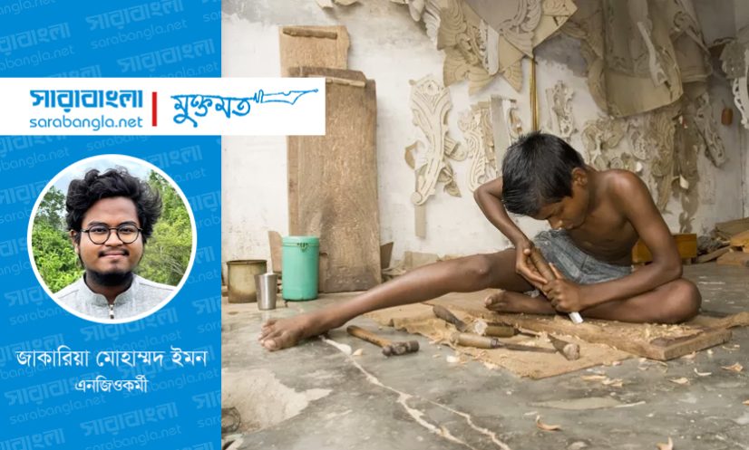 বাংলাদেশের পথঘাট, কল-কারখানা, বাসাবাড়ি কিংবা ছোট্ট চায়ের দোকান—কোথায় নেই শিশুশ্রমের করুণ দৃশ্য? কচি হাতে ভারী ইট তুলছে কেউ, কারও চোখে ঘুম জমে আছে ক্লান্তির ভারে, অথচ তারা খেলাধুলা করার বয়সেই কঠিন বাস্তবতার মুখোমুখি। শিশুদের কাঁধে সংসারের বোঝা চাপিয়ে দিয়ে আমরা কি আসলে তাদের ভবিষ্যৎ নষ্ট করছি না?