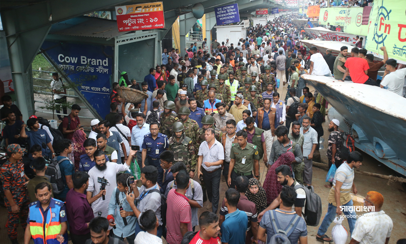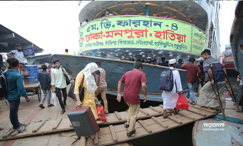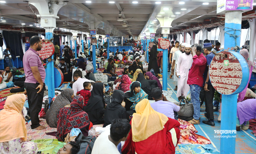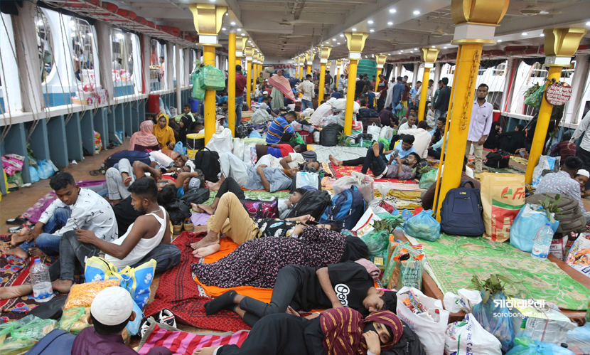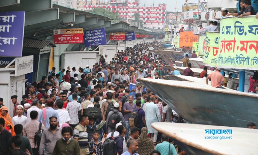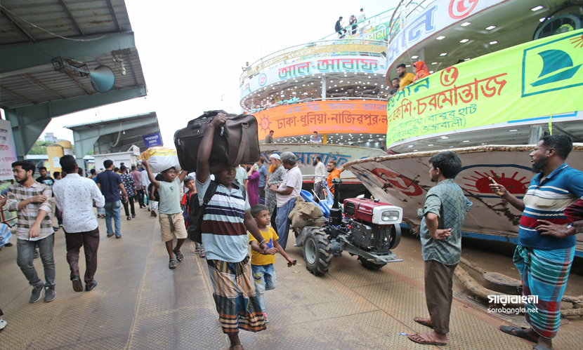 সদরঘাটে ঘরমুখো মানুষের ঢল