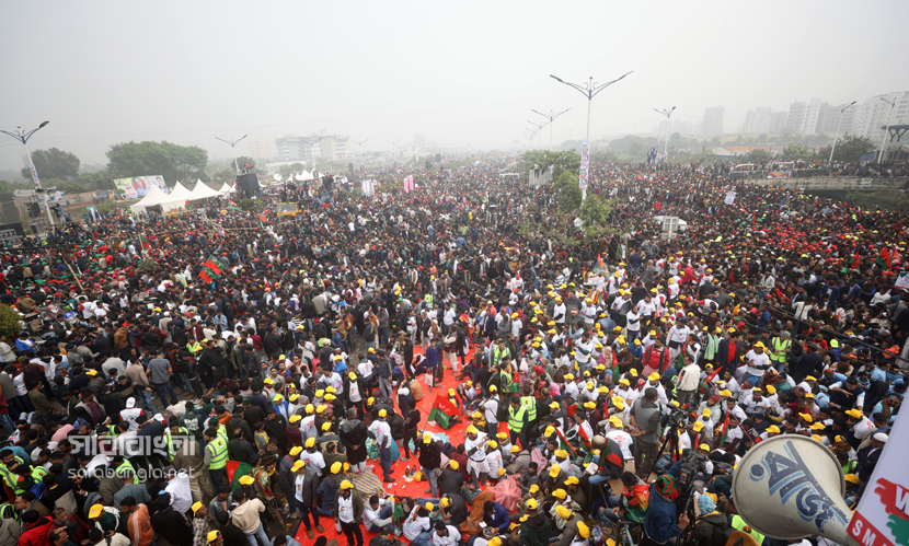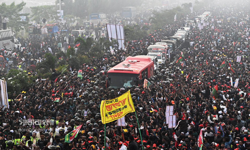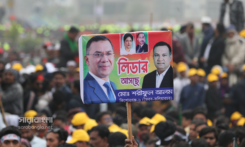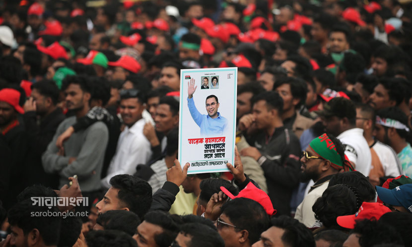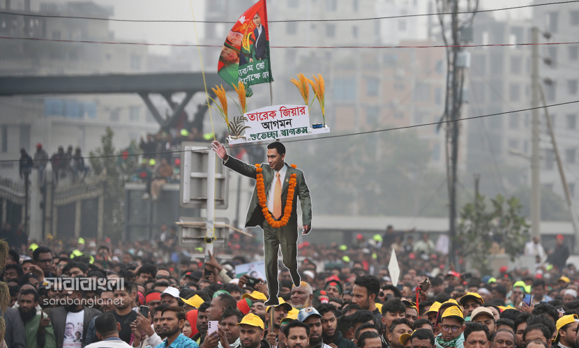 ১৭ বছর তিন মাস। ৬ হাজার ৩১৪ দিন। এই দীর্ঘ সময় যুক্তরাজ্যে নির্বাসিত ছিলেন। অবশেষে সেই নির্বাসিত জীবনের ইতি টেনে ২৫ ডিসেম্বর দেশে ফিরলেন বিএনপির ভারপ্রাপ্ত চেয়ারম্যান তারেক রহমান। তার এই ফেরার মধ্য দিয়ে প্রাণ ফিরে পেয়েছে বিএনপি। জনগণের প্রত্যাশা, এখন আস্থায় ফিরবে রাজনীতি ও গণতন্ত্র। দেশের অস্থিরতা ক্রমেই দূর হয়ে যাবে। তৃণমূল থেকে কেন্দ্র পর্যন্ত আস্থা ও সংকটে মানুষের পাশেই থাকবেন তিনি। ’২৪ এর গণঅভ্যুত্থান পরবর্তী বাংলাদেশের রাজনীতি এক সন্ধিক্ষণ পার করছে। সেই সন্ধিক্ষণে দাঁড়িয়ে এরই মধ্যে স্বকীয় ভাব ও ভঙ্গিমায় মানুষের বিশ্বাসের জায়গায় স্থান করে নিয়েছেন তিনি। উত্তরাধিকারের প্রশ্নে নয়, নিজ যোগ্যতা ও নেতৃত্বে এখন তিনিই বিএনপির অদ্বিতীয় নেতা। তরুণ প্রজন্মের এই নেতার প্রত্যাবর্তনকে স্মরণীয় করে রাখতে বাংলাদেশ জাতীয়তাবাদী দল-বিএনপি পূর্বাচলের ‘৩০০ ফুটে’ আয়োজন করেছিল গণসংবর্ধনা অনুষ্ঠানের। সেই অনুষ্ঠানের জনস্রোত ও মানুষের আনন্দ-উচ্ছ্বাসের মুহূর্ত এবং উদ্ভাসিত তারেক রহমানের ছবিগুলো ফ্রেমবন্দি করেছেন সারাবাংলার সিনিয়র ফটোকরেসপন্ডেন্ট হাবিবুর রহমান