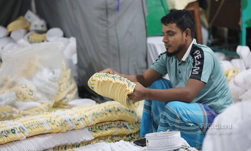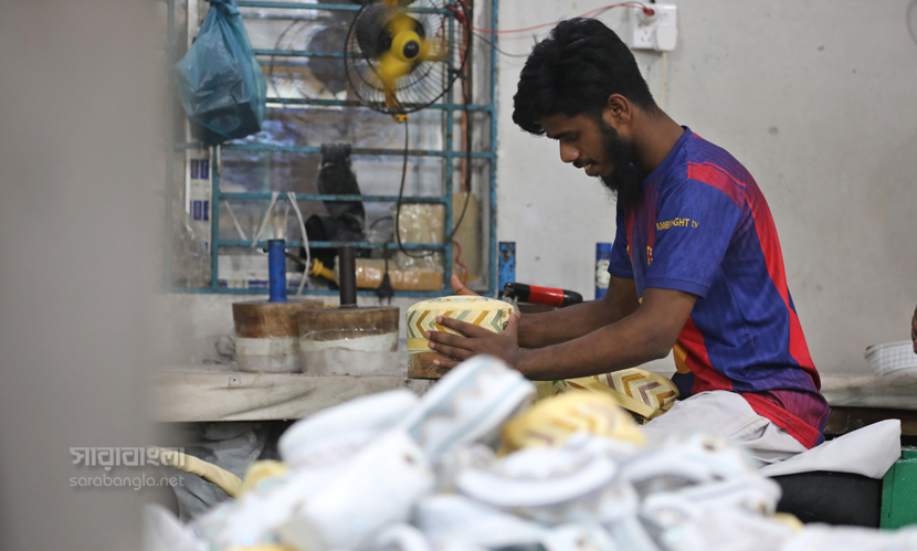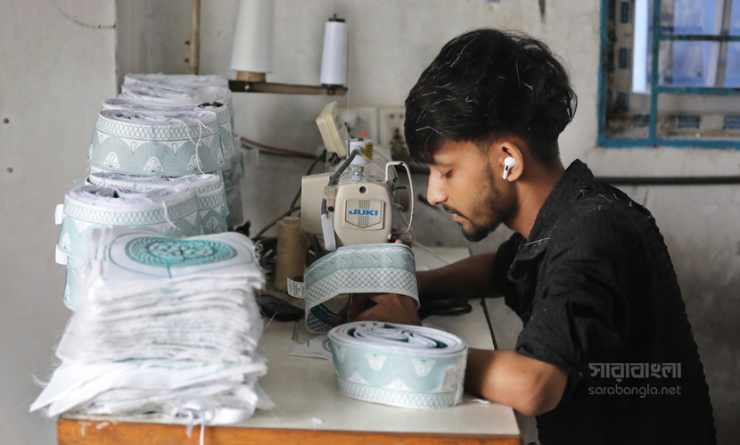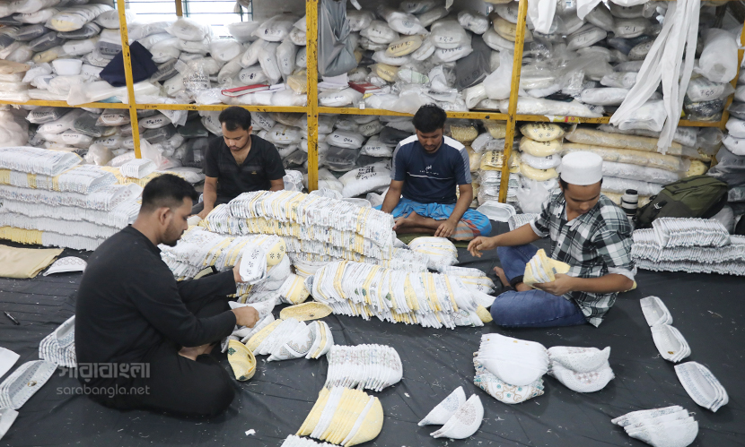 নিপুণ হাতের স্পর্শে কারুকাজ খচিত টুপি তৈরিতে ব্যস্ত কারিগররা। দিনরাত টুপি তৈরির কাজে ব্যস্ত হয়ে পড়ায় দম ফেলার ফুরসত নেই তাদের। সারাবছরই ঢাকার কামরাঙ্গীর চরের টুপি কারখানাগুলো থাকে কর্মব্যস্ত। রোজা ও ঈদকে কেন্দ্র করে টুপির চাহিদা বেড়ে যায়। ব্যস্ততা বাড়ে কারখানাগুলোতেও। মধ্যপ্রাচ্যের বাজারে দৃষ্টিনন্দন বাংলাদেশি টুপি ওমান, কুয়েত, কাতার, সৌদিআরব ও বাহরাইনসহ বিভিন্ন দেশে চাহিদা রয়েছে। বাড়তি চাহিদা পূরণ করতে কারখানার শ্রমিকেরা দিনরাত কাজ করছেন। নকশা ও উপকরণভেদে কারখানায় এক ডজন টুপি পাইকারি ২০০ থেকে ৭০০ টাকা দরে বিক্রি হয়। রাজধানীর কামরাঙ্গীর চর ঘুরে টুপি কারখানার ছবিগুলো ফ্রেমবন্দি করেছেন সারাবাংলার সিনিয়র ফটোকরেসপন্ডেন্ট হাবিবুর রহমান।