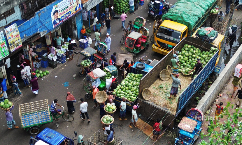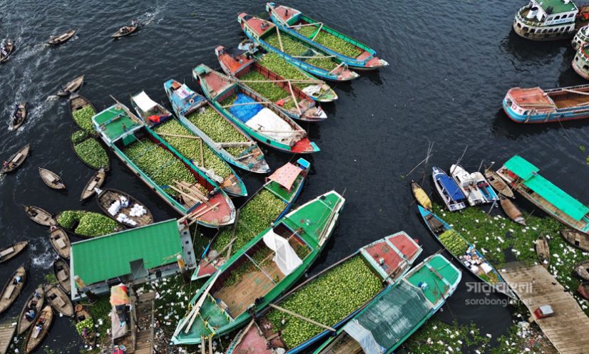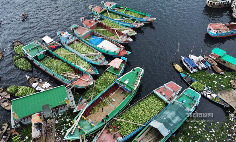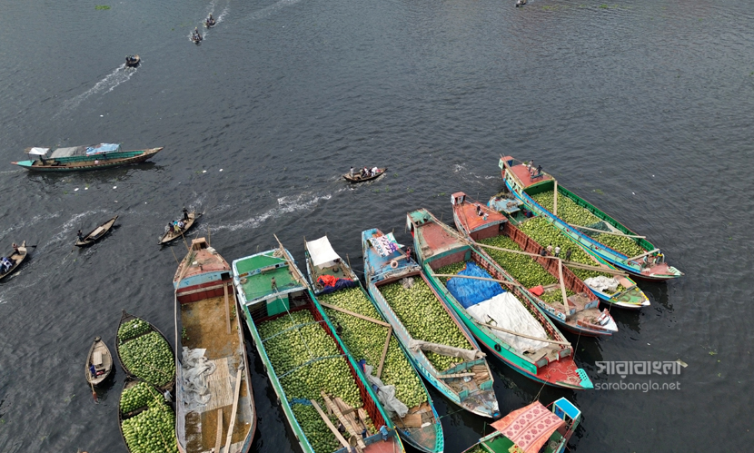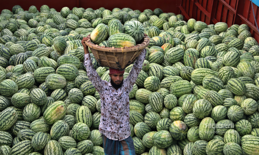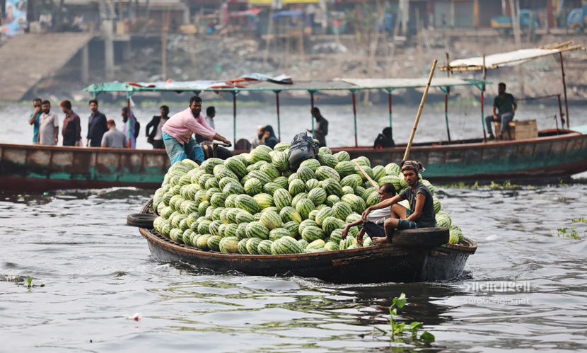 গরম না আসতেই গ্রীষ্মকালীন ফল তরমুজে সয়লাব বাজার। এ বছর আবহাওয়া অনুকূলে থাকায় তরমুজের বাম্পার ফলন হয়েছে। রাজধানী ঢাকায় যত তরমুজ আসে তার বেশিরভাগই দক্ষিণাঞ্চলের। লঞ্চ কিংবা ট্রলারে করে তরমুজগুলো আসে পুরান ঢাকার ওয়াইজঘাটে। যেটাকে তরমুজের হাটও বলা যায়। সেখানে সারি সারি ট্রলার থেকে নামানো হচ্ছে হাজার হাজার তরমুজ। বরিশাল, ভোলা, পটুয়াখালী ও বরগুনা থেকে আসা এসব তরমুজ আকারে বড় এবং মানেও বেশ ভালো। সেখান থেকে পাইকাররা তরমুজ কিনে ছড়িয়ে পড়ে রাজধানী জুড়ে। রাজধানীর ওয়াইজঘাট থেকে ‘তরমুজ হাটের’ ছবিগুলো তুলেছেন সারাবাংলার সিনিয়র ফটোকরেসপন্ডেন্ট হাবিবুর রহমান।
