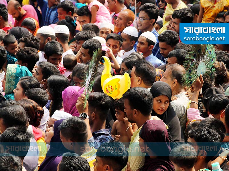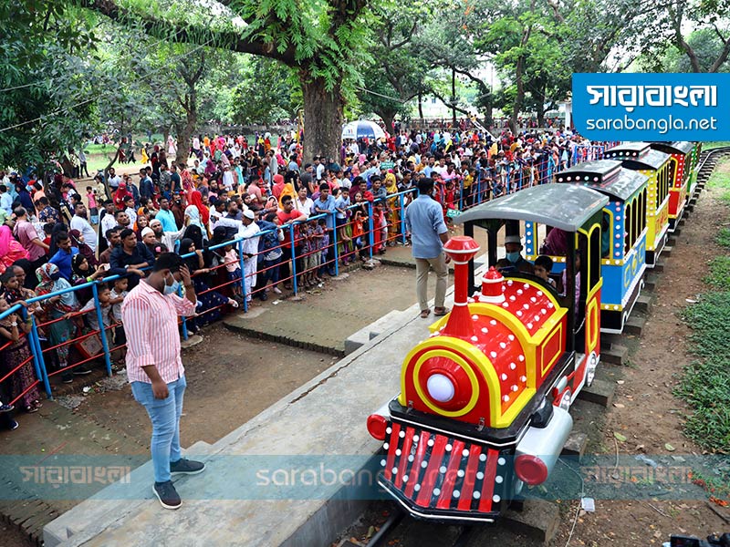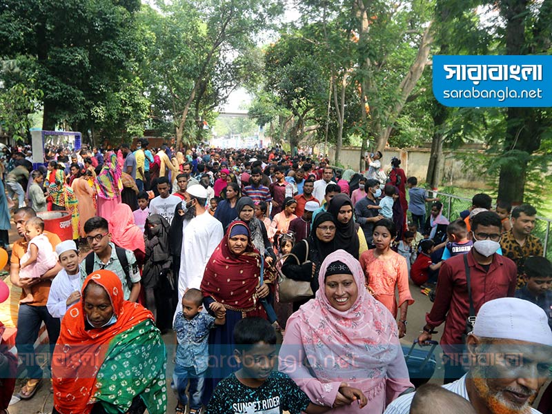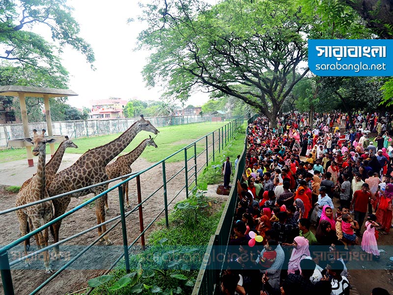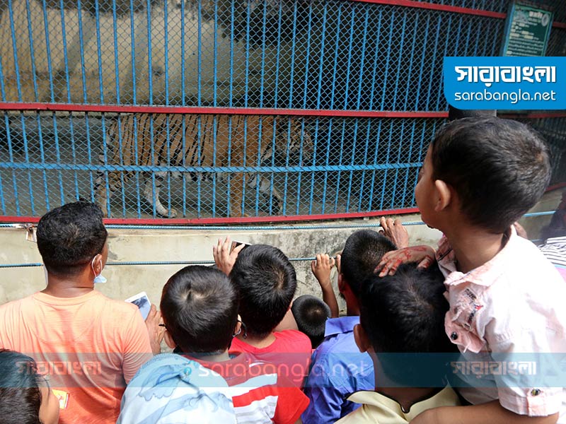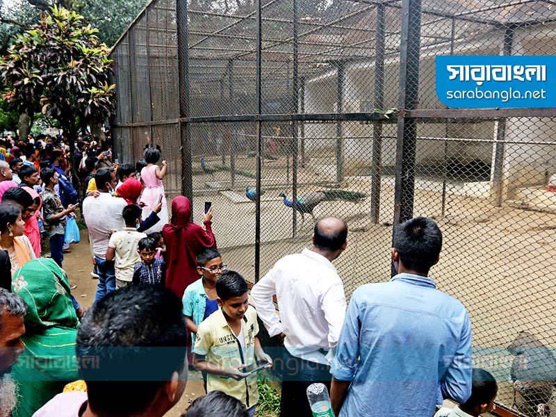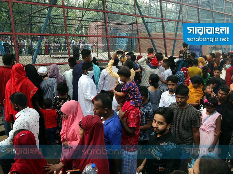 ইদুল ফিতরের পরদিন। দীর্ঘ দুই বছর পর ইদ উদযাপনের সুযোগ পেয়ে তাই মানুষের ঢল নেমেছে বিনোদনকেন্দ্রগুলোতে। একই চিত্র দেখা গেল মিরপুরে জাতীয় চিড়িয়াখানাতেও। চিড়িয়াখানার প্রায় এক কিলোমিটার দূর থেকেই শুরু হয়েছে প্রবেশের লাইন। ভেতরেও প্রতিটি খাঁচার সামনেই উপচে পড়া ভিড় দর্শনার্থীদের। ছেলে-বুড়ো কোনো বয়সী মানুষেরই অনুপস্থিতি নেই।