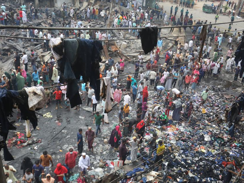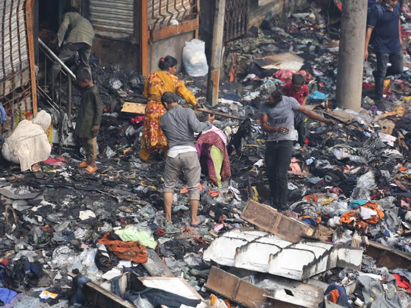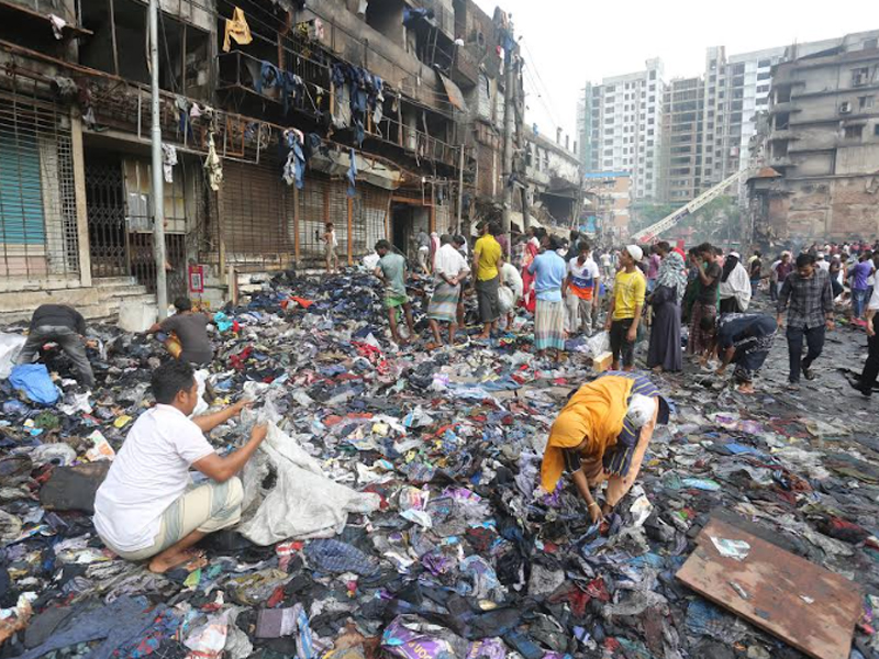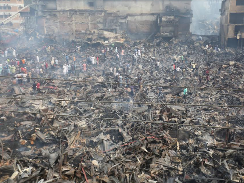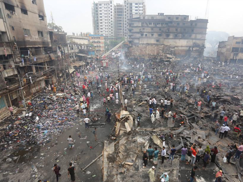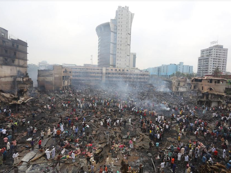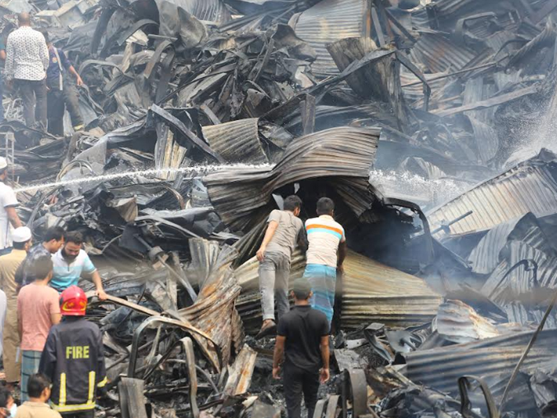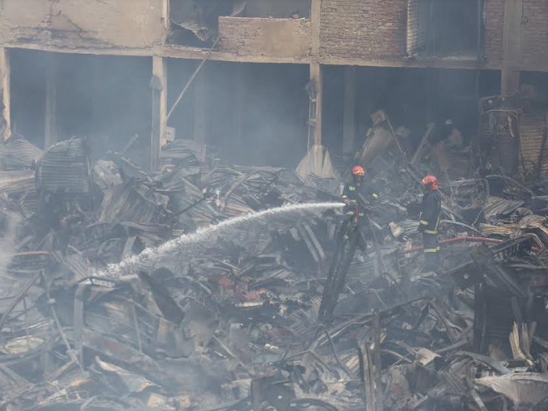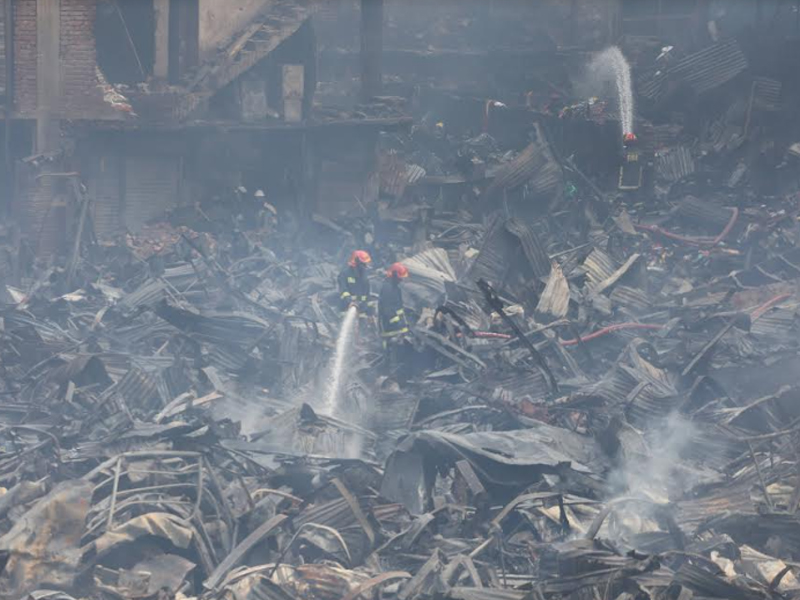 মঙ্গলবার (৪ এপ্রিল) ছয় ঘণ্টার আগুনে দেশের বৃহত্তম পাইকারি কাপড়ের বাজার বঙ্গবাজার পুড়ে ছাই। বঙ্গবাজারে অগ্নিকাণ্ডের প্রায় ২৪ ঘণ্টা পর বুধবার সকাল পর্যন্ত আগুন পুরোপুরি নেভেনি। আগুন নিয়ন্ত্রণে থাকলেও থেমে থেমে জ্বলছে। অগ্নিকাণ্ডের প্রায় ২৪ ঘণ্টা পর বুধবার সকালে ভস্মীভূত বঙ্গবাজারের ছবি তুলেছেন সারাবাংলার সিনিয়র ফটো করেসপন্ডেন্ট হাবীবুর রহমান।