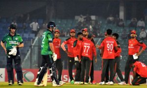 আয়ারল্যান্ডের ১৭০ রানের জবাব দিতে নেমে ইনিংসের দশম ওভারে বাংলাদেশের স্কোর ছিল ২ উইকেটে ১৩৮। মনে হচ্ছিল দাপুটে জয়ই পেতে যাচ্ছেন স্বাগতিকরা। কিন্তু এরপর মাত্র ১৯ রানের ব্যবধানে চার উইকেট […]