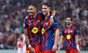 প্রথমার্ধে ১৬ মিনিটের ব্যবধানে ৪ গোল করে ফাইনালে এক পা দিয়ে রেখেছিলেন তারা। স্প্যানিশ সুপার কাপের সেমিফাইনালে অ্যাথলেটিক বিলবাওকে শেষ পর্যন্ত ৫-০ গোলে গুঁড়িয়ে দিল বার্সেলোনা। রাফিনহার জোড়া গোলে বিলবাওকে […]