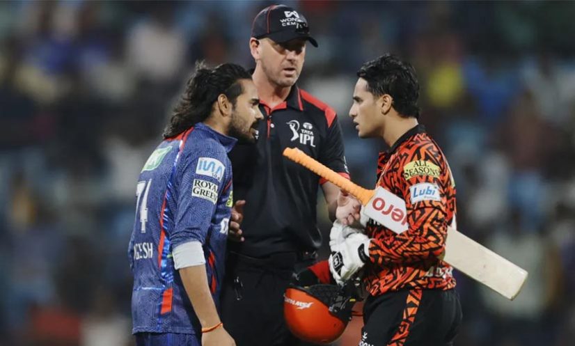 লখনৌর দেয়া ২০৬ রানের লক্ষ্যে তখন ব্যাট করছে সানরাইজার্স। অষ্টম ওভারে ব্যাট করছিলেন অভিষেক শর্মা। দিগভেশের বলে তুলে মারতে গিয়ে শার্দুল ঠাকুরের হাত ক্যাচ দেন এই বাঁহাতি ওপেনার। উইকেট পাওয়ার আনন্দে ‘নোটবুক’ স্টাইলে উদযাপন করতে করতে অভিষেককে কিছু একটা বলেও বসেন তখন দিগভেশ।