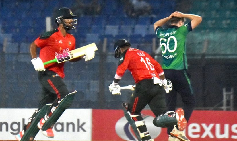 শনিবার (২৯ নভেম্বর) চট্টগ্রামের বীরশ্রেষ্ঠ ফ্লাইট লেফটেন্যান্ট মতিউর রহমান স্টেডিয়ামে আয়ারল্যান্ডের ১৭০ রানের জবাব দিতে নেমে বাংলাদেশের হয়ে ঝড়ো শুরু করেছিলেন পারভেজ হোসেন ইমন। অপর ওপেনার তানিজদ হাসান তামিম ঠিকভাবে সঙ্গ দিতে পারেননি। ভুল বোঝাবুঝিতে রান আউট হয়েছেন ১০ বলে ৭ রান করে।