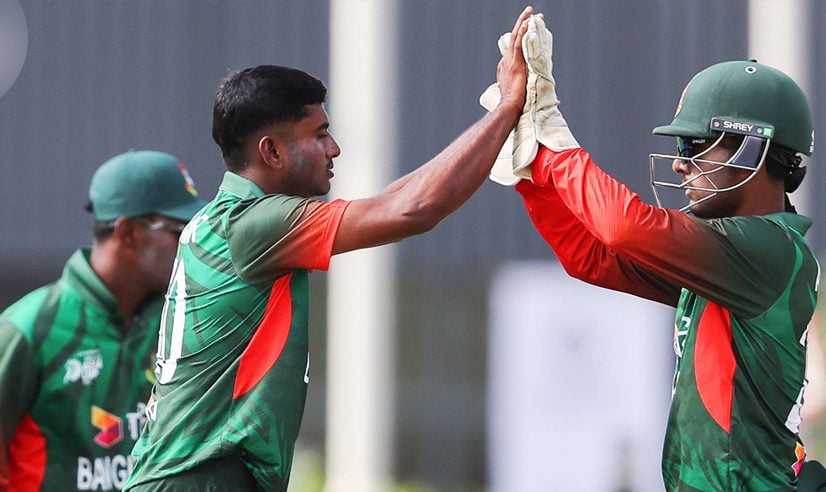 একটা সময় তামিম, সামিুন বশির ও মোহাম্মদ আবউল্লাহ পরপর ফিরে গেলে চাপ গিয়ে পরে বাংলাদেশের ওপর। তবে শেষ দিকে রিজান হোসেন ও শেখ মারভেজ জীবনের হিসেবি ব্যাটিংয়ে জয় নিশ্চিত হয়েছে বাংলাদেশের।