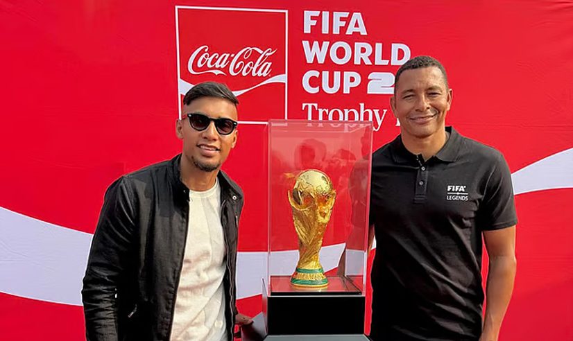 বিশ্বভ্রমণের অংশ হিসেবে পূর্বনির্ধারিত সময় অনুযায়ী আজ বাংলাদেশে এসেছে ফিফা ২০২৬ বিশ্বকাপ ট্রফি। বিশ্বকাপ ট্রফির সঙ্গে এই ভ্রমণে এসেছেন ২০০২ সালে ব্রাজিলের বিশ্বকাপজয়ী দলের সদস্য গিলবার্তো ডি সিলভা। বিশ্বকাপ ট্রফি কাছ থেকে দেখে রোমাঞ্চিত বাংলাদেশ জাতীয় ফুটবল দলের অধিনায়ক জামাল ভূঁইয়া।