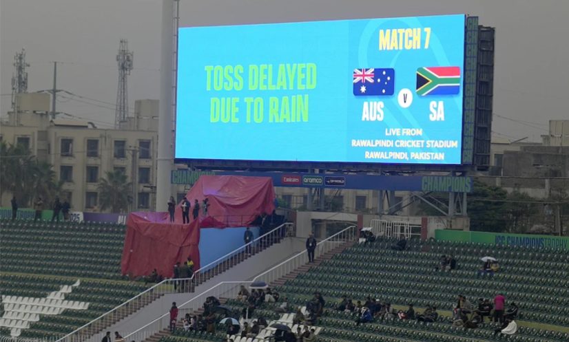 রাওয়ালপিন্ডিতে আজ সকাল থেকে বৃষ্টির বাগড়া। তাই বাংলাদেশ সময় বিকেল ৩টায় শুরু হওয়ার কথা থাকলেও এখনও টসই হয়নি চ্যাম্পিয়নস ট্রফিতে অস্ট্রেলিয়া-দক্ষিণ আফ্রিকা ম্যাচের। পুরো মাঠ ঢেকে দেয়া হয়েছে ত্রিপলে। দর্শকরা দলে দলে এলেও বৃষ্টি না কমায় চলে গেছেন বেশিরভাগই।