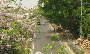 রাধাচূড়ার রঙে রঙিন হয়ে উঠেছে ঢাকা-চট্টগ্রাম মহাসড়ক