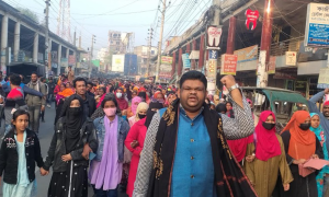 তারেক রহমানকে স্বাগত জানিয়ে বগুড়ায় ছাত্রদলের মিছিল