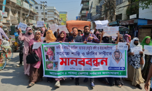 পাবনায় দাদি-নাতনিকে হত্যা, জড়িতদের ফাঁসির দাবিতে মানববন্ধন