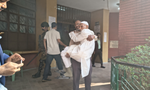 ছেলের কোলে চড়ে ভোটকেন্দ্রে প্রবীণ বাবা
