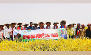 নাটোরের চলনবিলে বোরো ধান কাটা শুরু