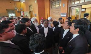 ভার্চুয়াল কোর্ট বাতিলের দাবিতে সুপ্রিম কোর্ট প্রাঙ্গণে আইনজীবীদের বিক্ষোভ