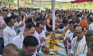 বান্দরবানে সাংগ্রাই উৎসবে মঙ্গলময় জল ঢেলে বুদ্ধমূর্তি স্নান