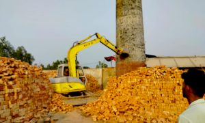 গুঁড়িয়ে দেওয়া হলো অবৈধ ইটভাটার চিমনি, লাখ টাকা জরিমানা