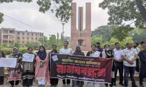 জাবি শিক্ষার্থী শারমিনের খুনির বিচার দাবিতে মানববন্ধন